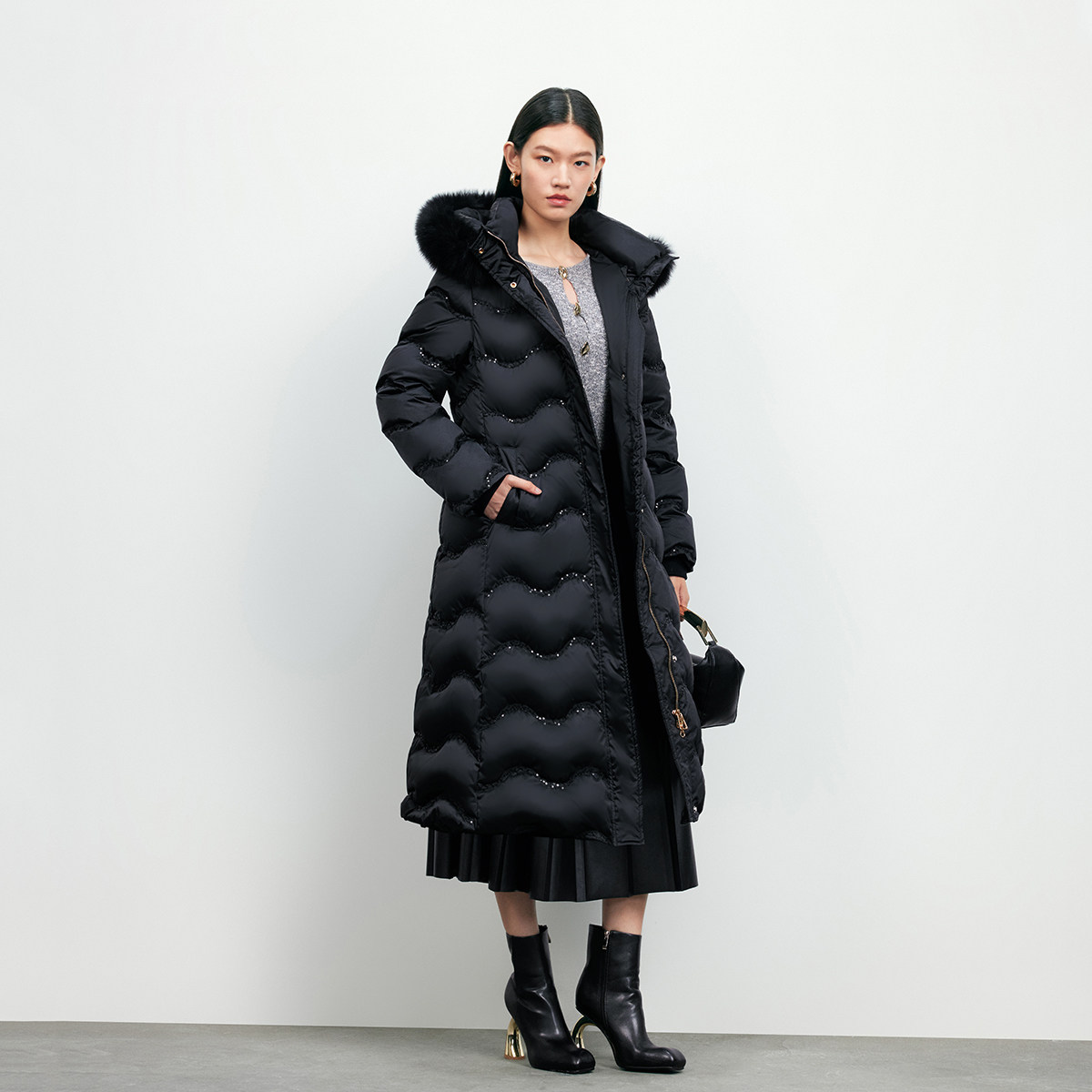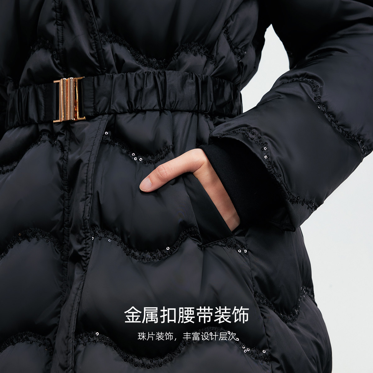 【奶油羽绒】VeroModa2025冬新款亮片刺绣收腰显瘦轻盈长款羽绒服