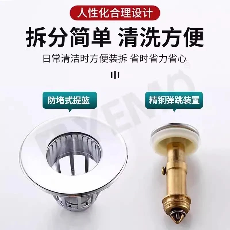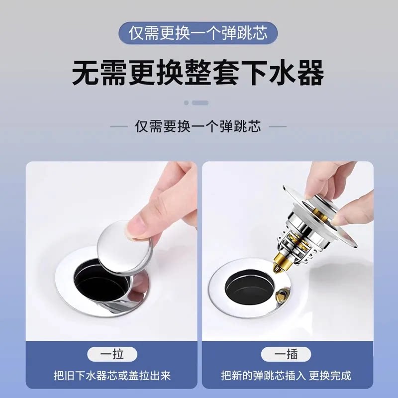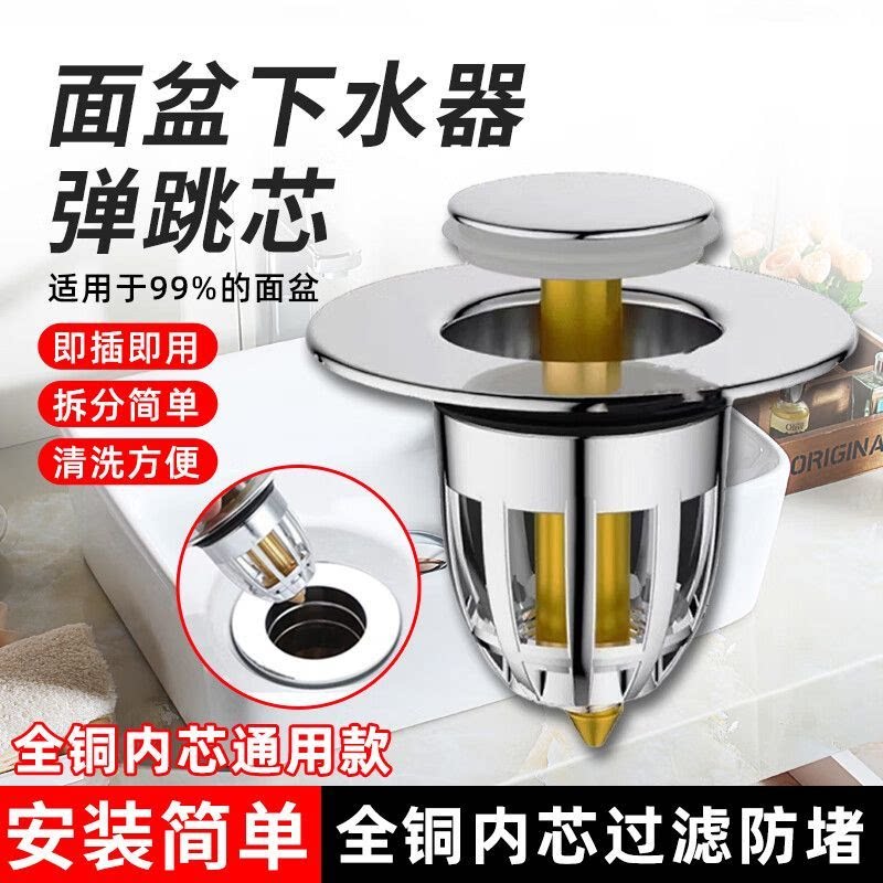 面盆弹跳芯洗手盆脸池漏水塞子通用按压式下水器管防返臭配件防臭