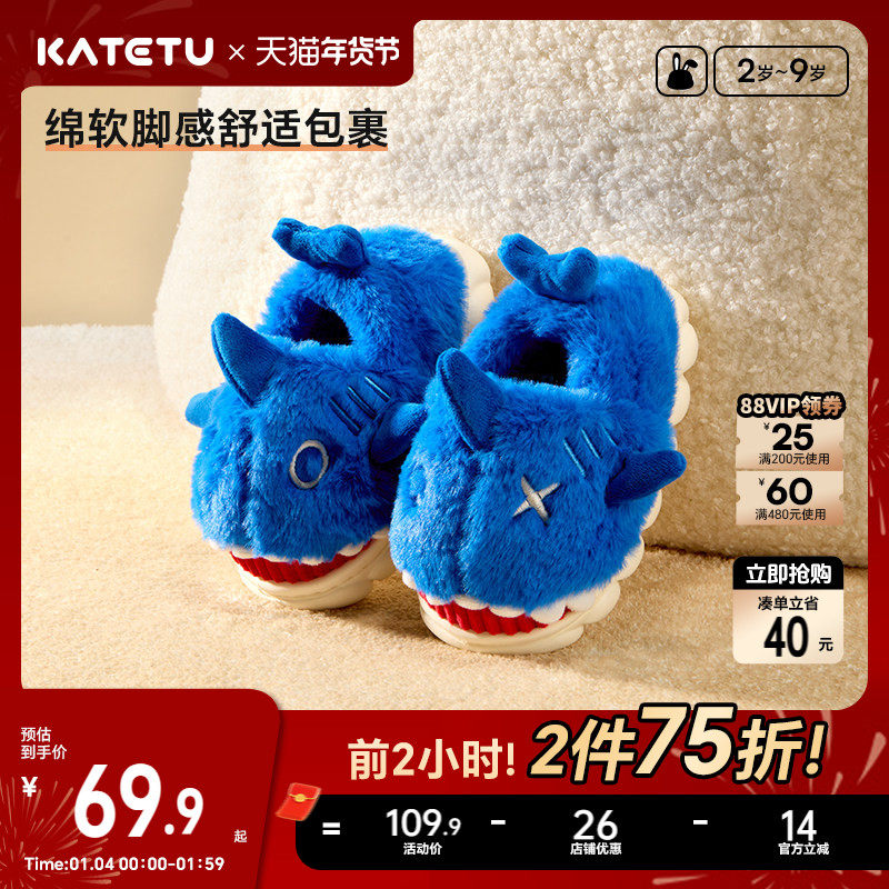 卡特兔儿童拖鞋男童女童秋冬2024新款室内防滑加绒保暖宝宝拖鞋