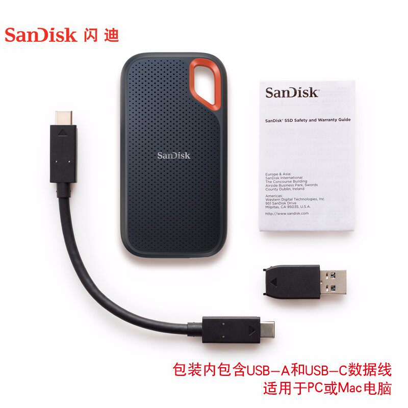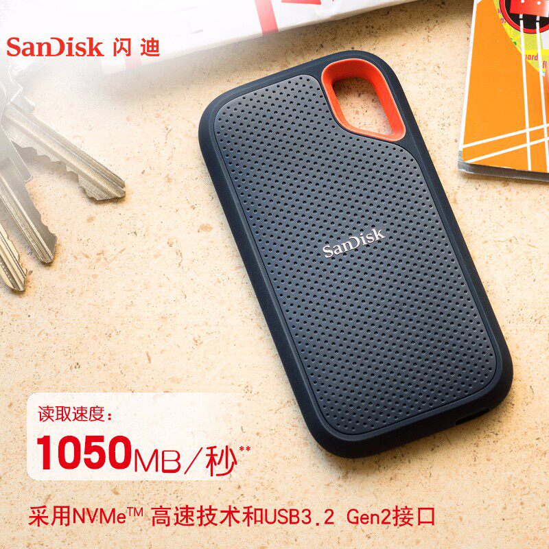 闪迪E61固态移动硬盘2t三防便携ssd外接1tb大容量手机电脑两用
