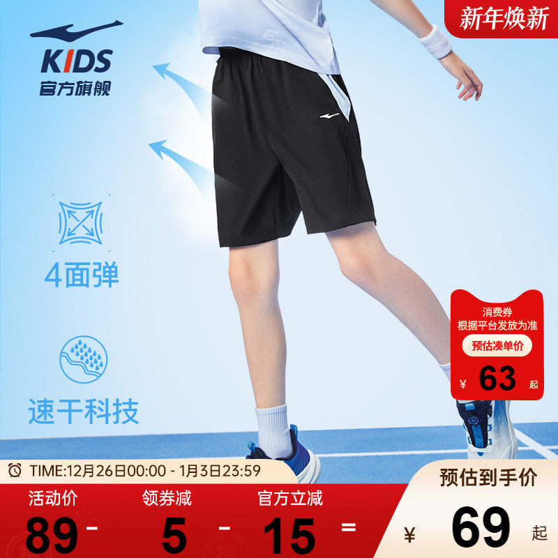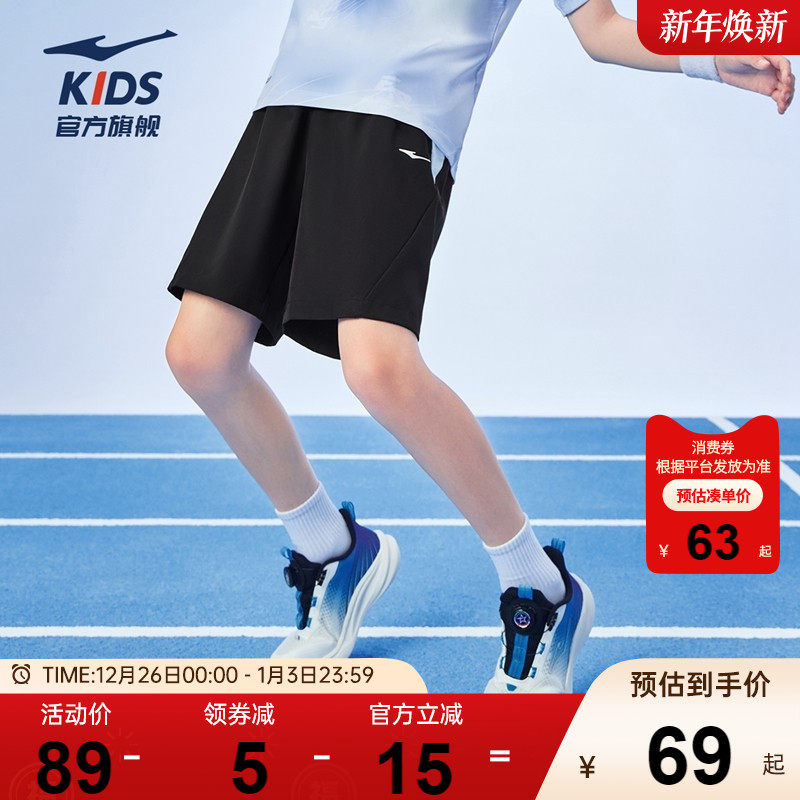 鸿星尔克童装儿童运动短裤男童夏季清凉跑步五分裤中大童速干裤子