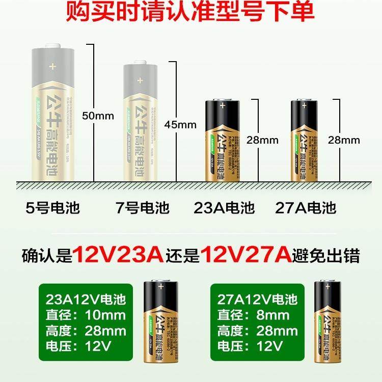 公牛23a12v遥控器电池27A12V电动车库道卷闸帘门红外防盗引闪器门铃遥控器23安12伏小号电子电池电动风扇开关