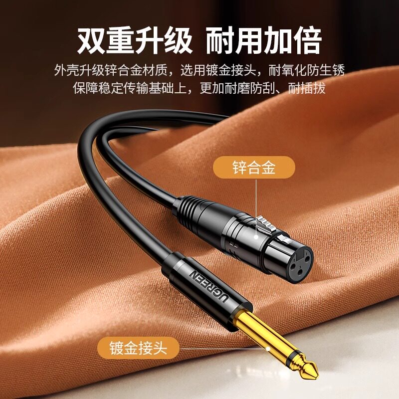 绿联6.5转卡农话筒线麦克风连接音响箱6.35mm卡侬公母头专用音频