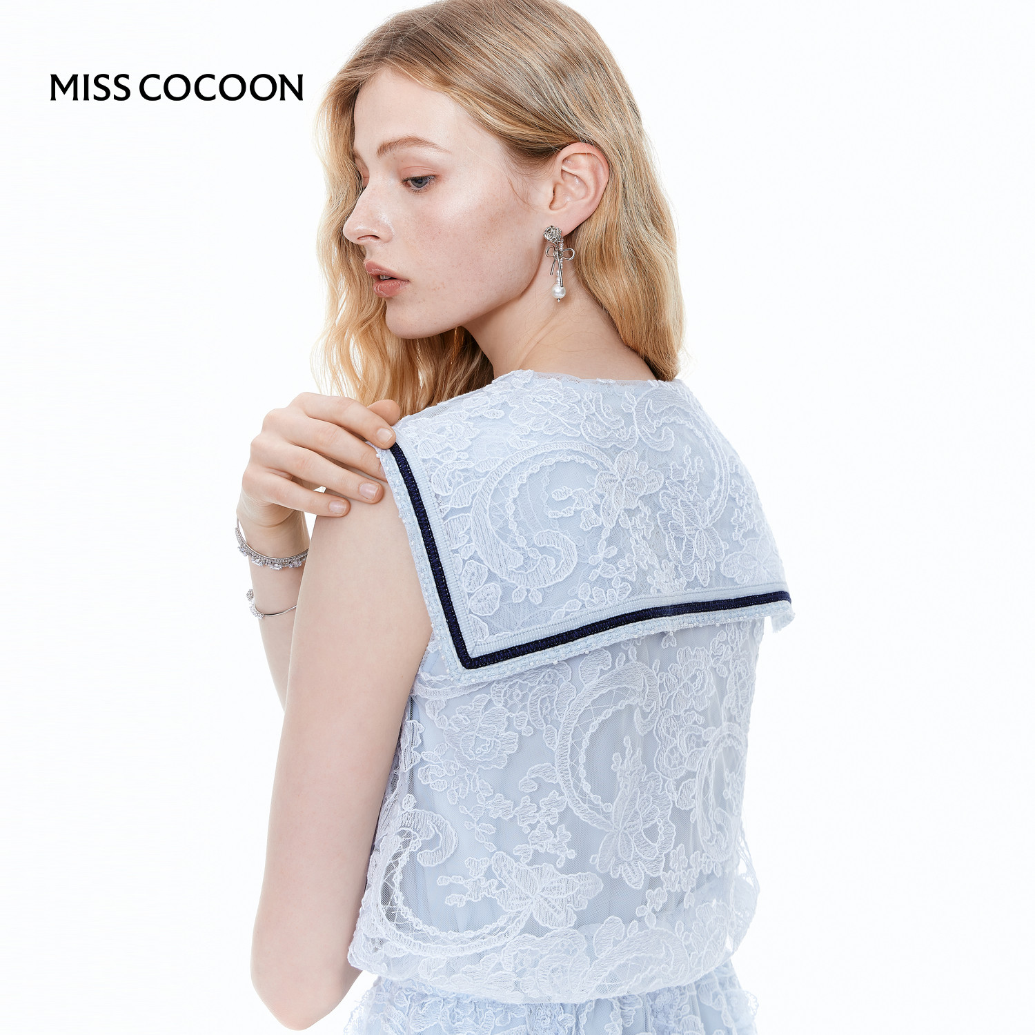 MISS COCOON可可尼海军领立体蕾丝裙子2025秋季新款学院风连衣裙