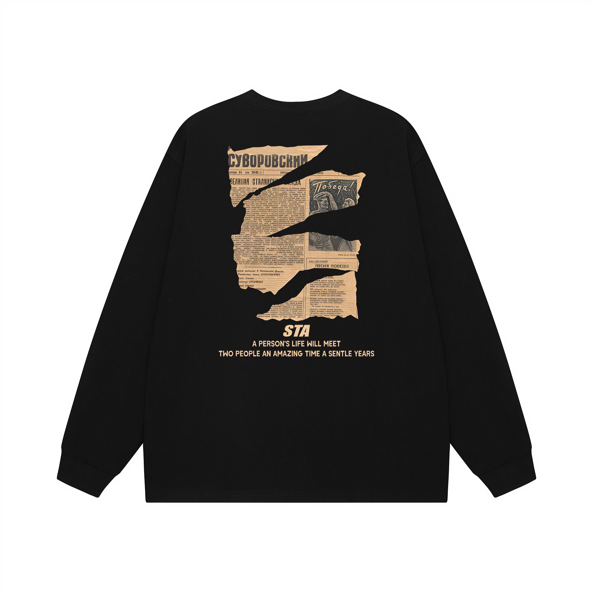STA旗舰店美式潮牌重磅纯棉长袖男女秋季高街vintage情侣黑色卫衣