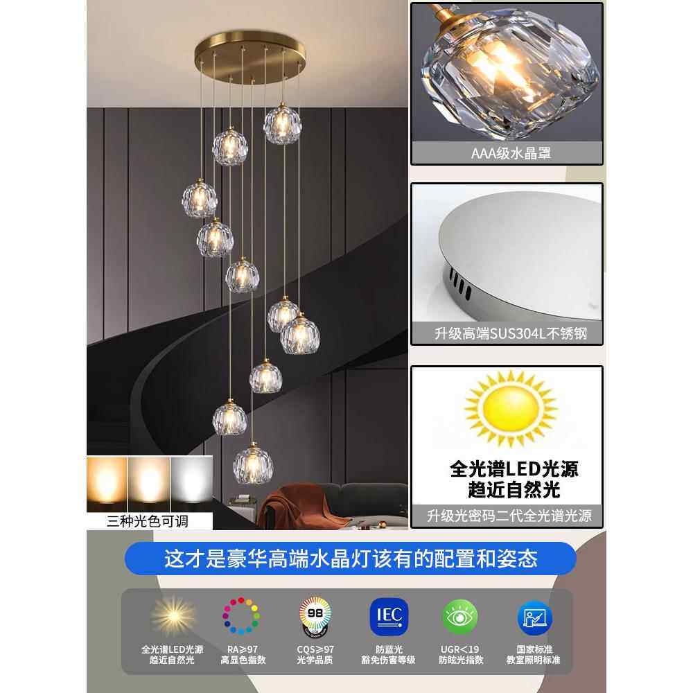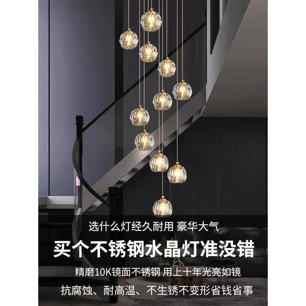 简约创意别墅复式楼梯间旋转楼梯长吊灯后现代轻奢客厅水晶吊灯具