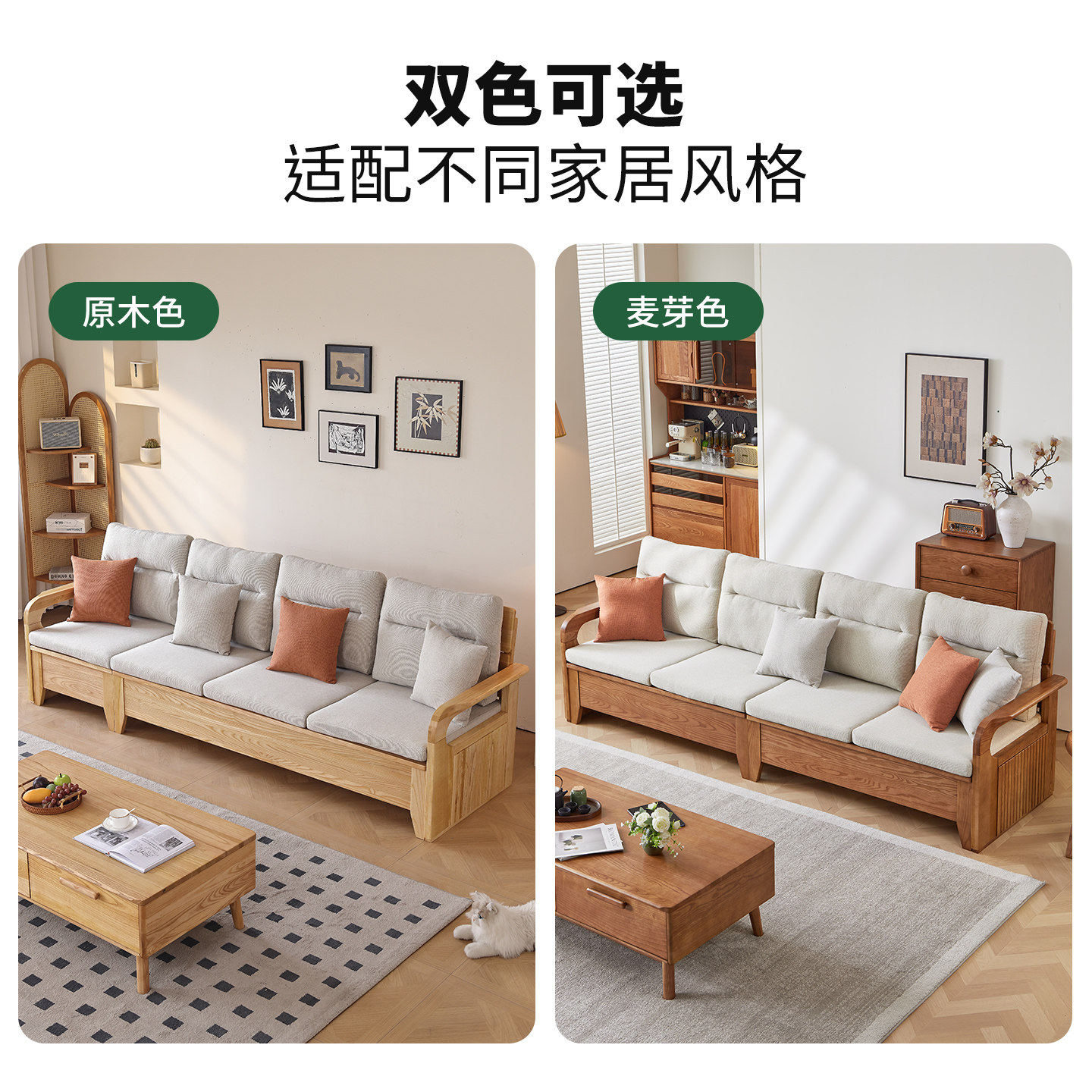 实木沙发新中式橡木真皮沙发北欧客厅小户型家具原木直排布艺沙发