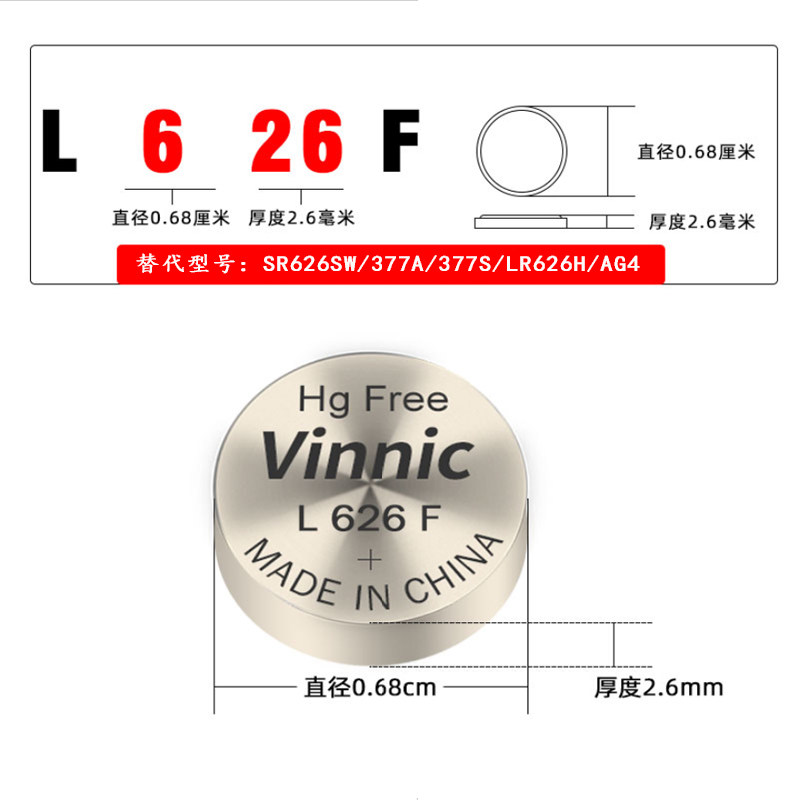 VINNIC进口品质L626F电池AG4/SR626SW/377A电子手表通用电池1.5v