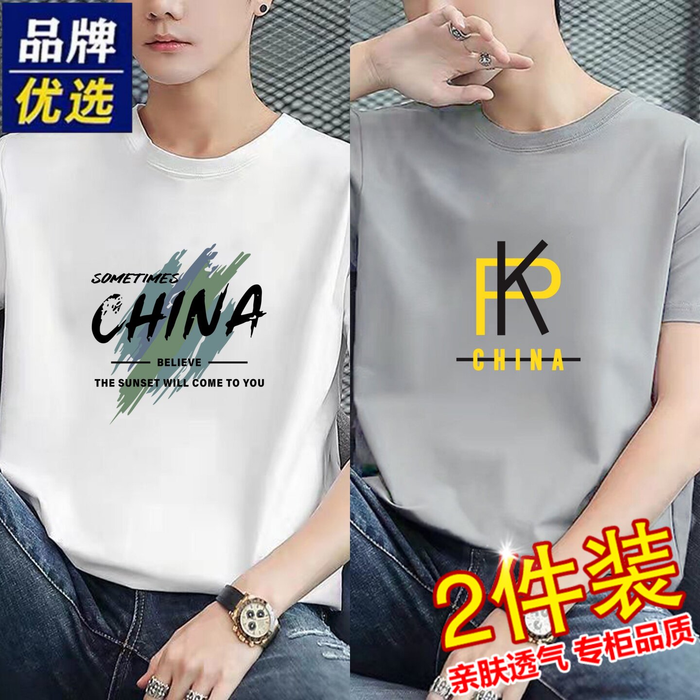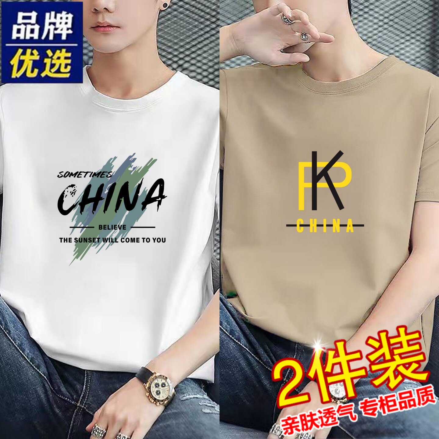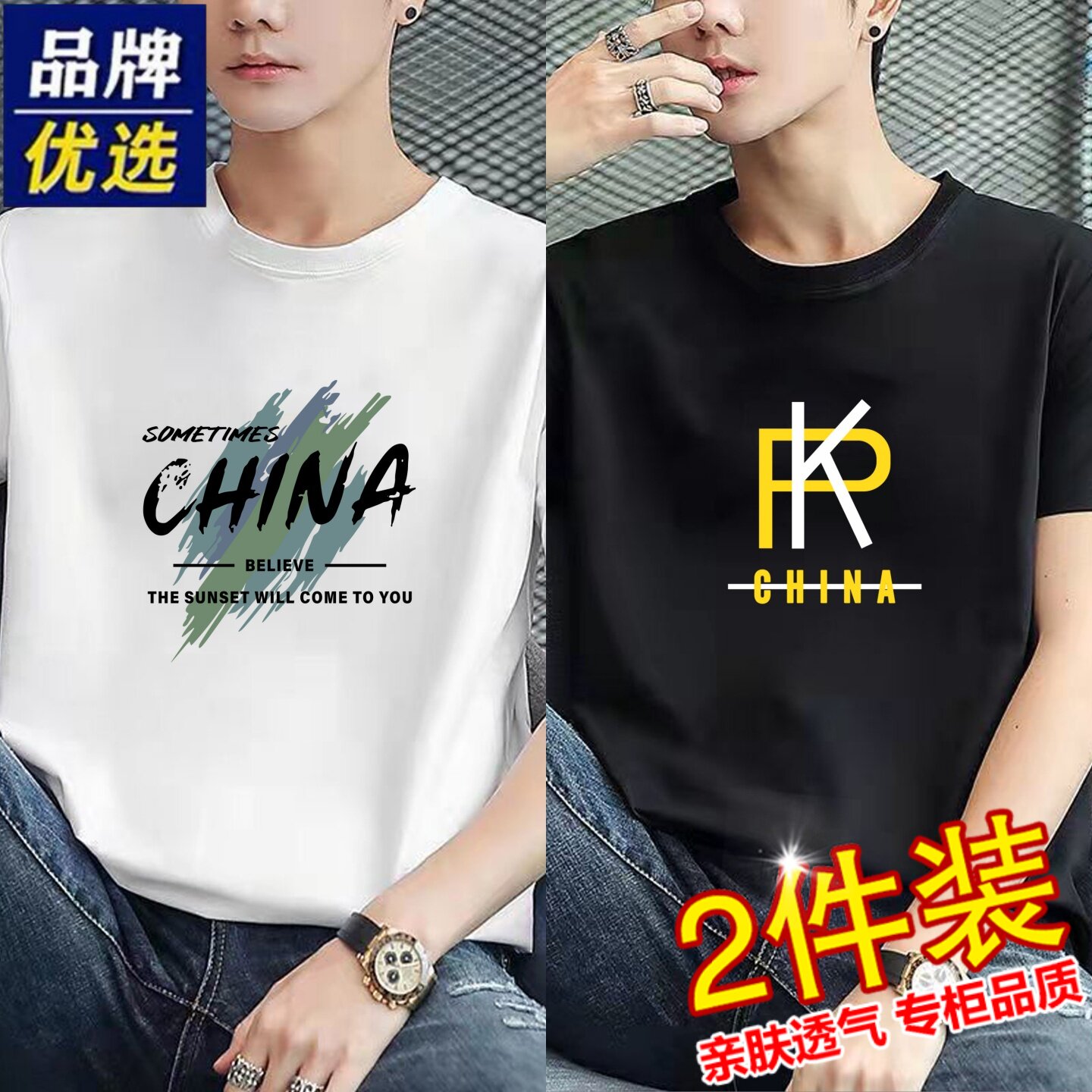 「简与白」纯棉短袖T恤2件装亲肤透气白小T内搭圆领舒适百搭打底
