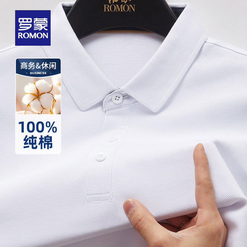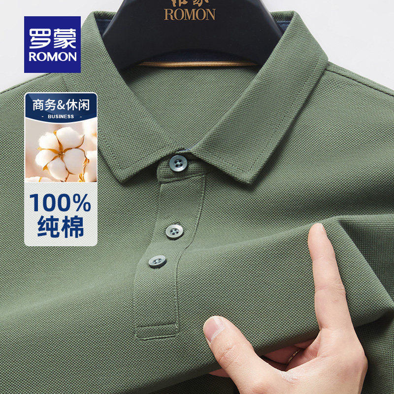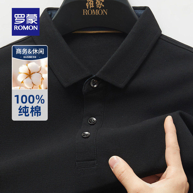 【纯棉】罗蒙轻奢商务休闲短袖POLO衫男士2026夏季新款纯色T恤衫