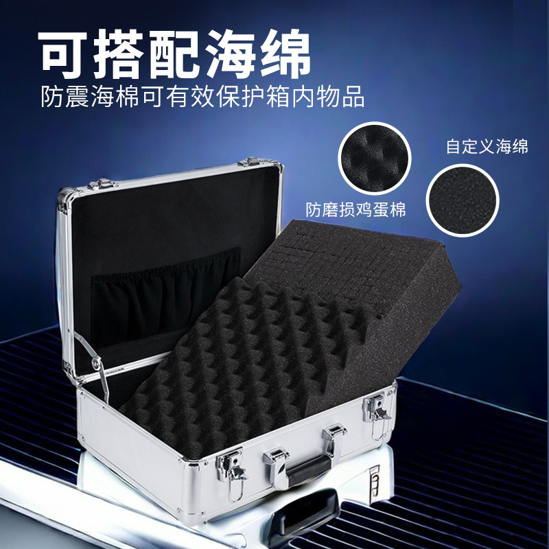EDGAR手提铝合金工具箱金属箱子五金仪器设备箱收纳箱大号海绵