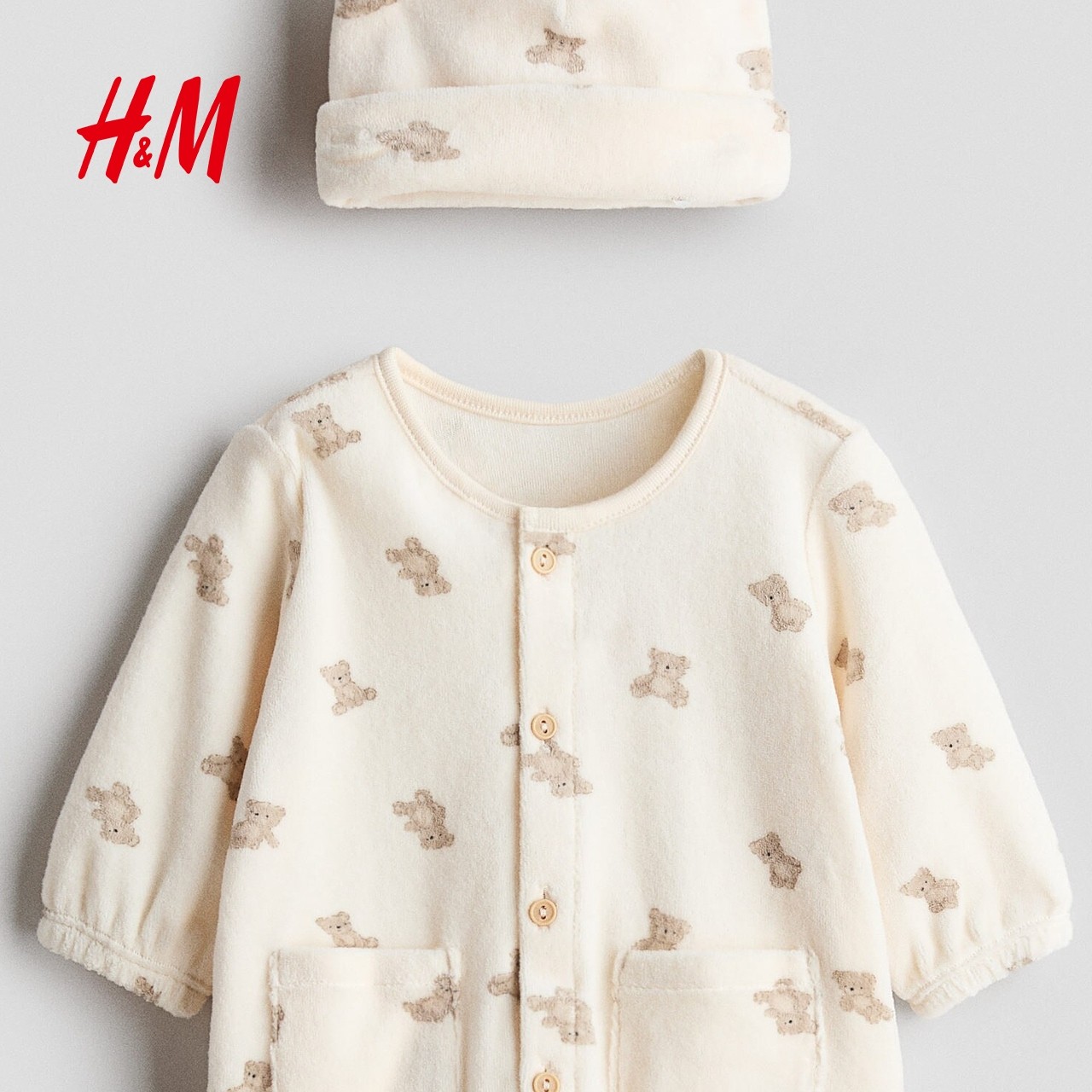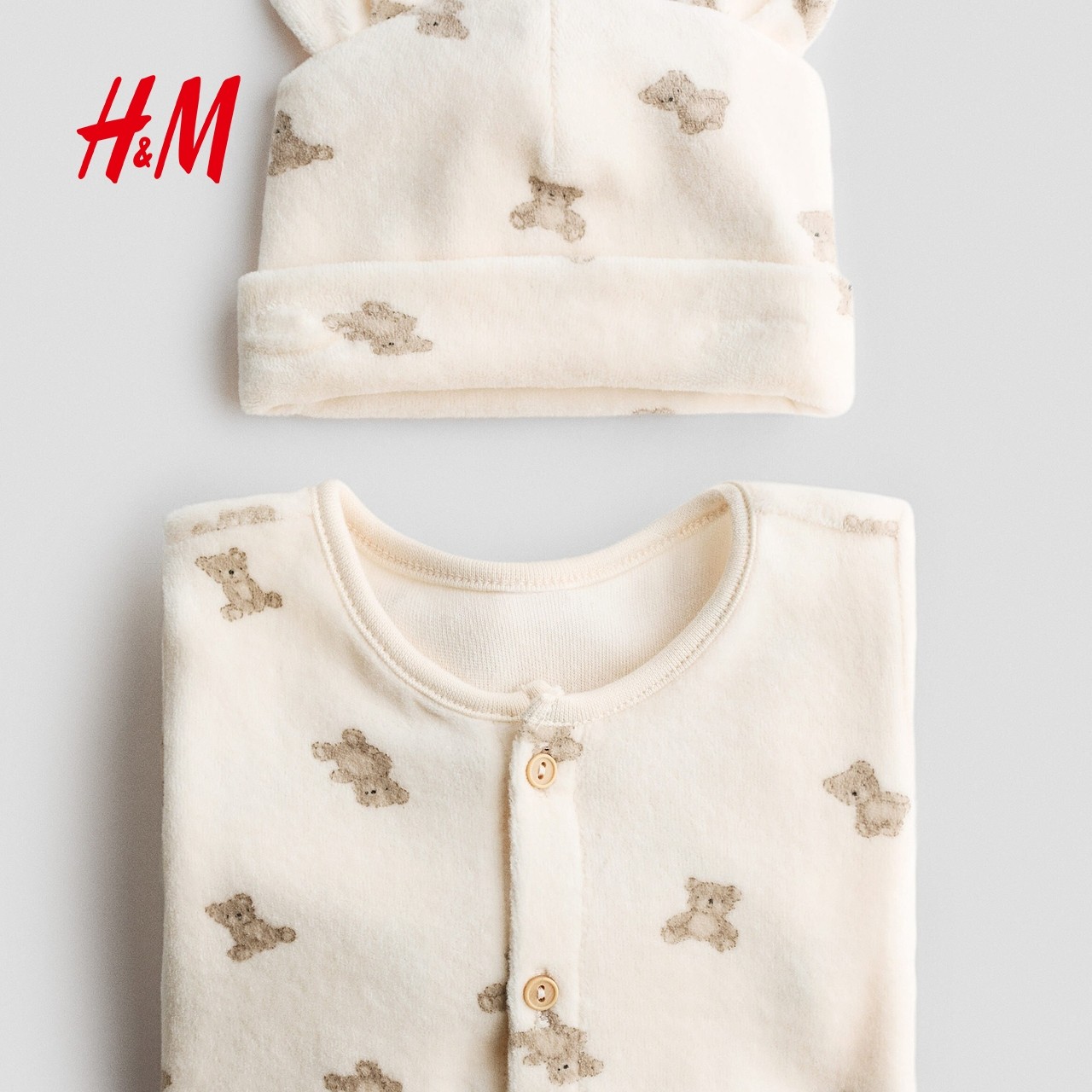 HM2025冬季新款童装男婴女婴2件式棉质丝绒套装1309915