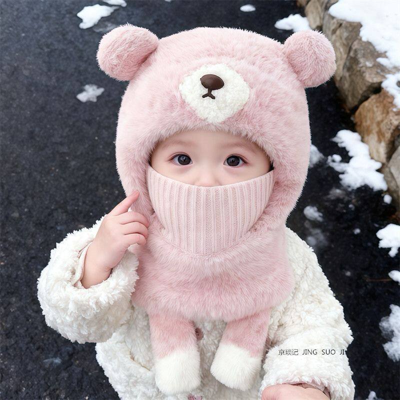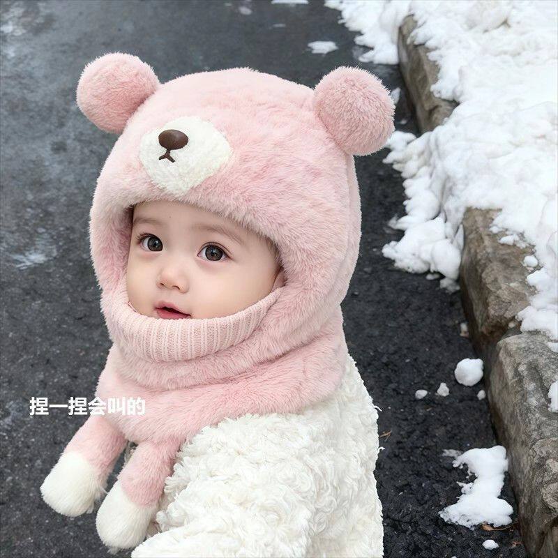 儿童帽子围巾一体冬季女孩面罩围脖两件套女童宝宝保暖毛绒防风帽