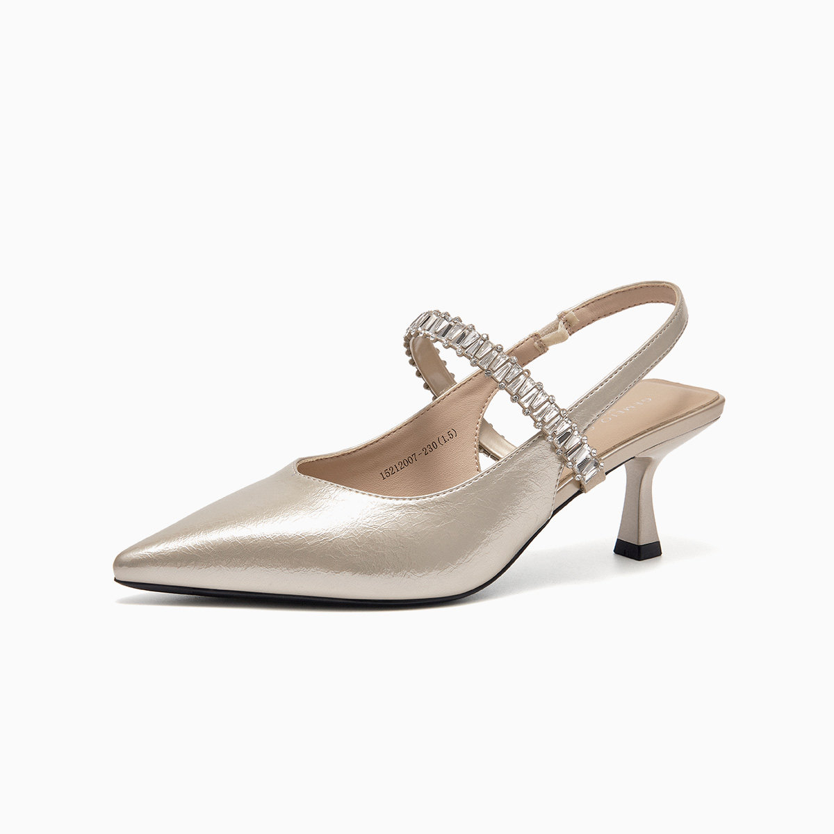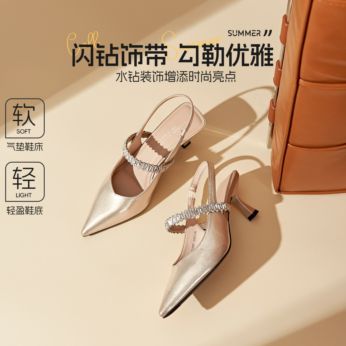 吴大叔2025秋冬时尚后空凉鞋尖头高跟鞋女气质高级不累脚漆皮女鞋