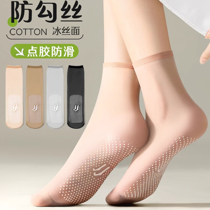 丝袜女短袜夏季薄款无痕防勾丝防滑棉底点胶透明水晶丝中筒袜隐形
