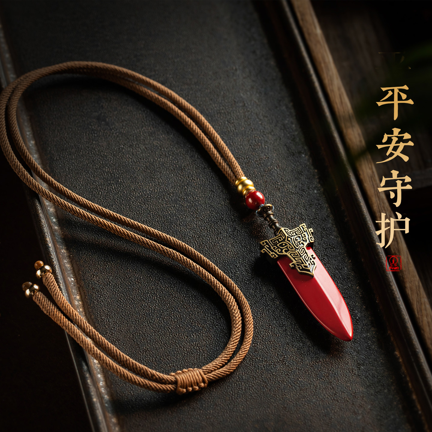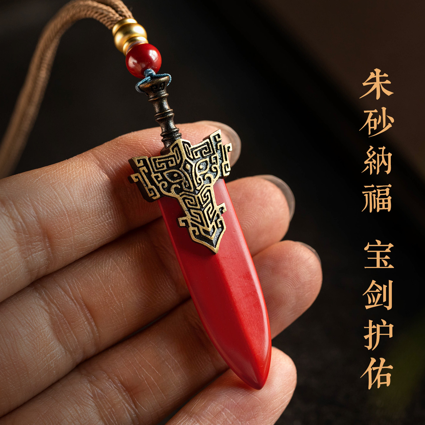【珍藏款】大善堂保真朱砂宝剑吊坠平安护身符挂饰精工项链中式礼