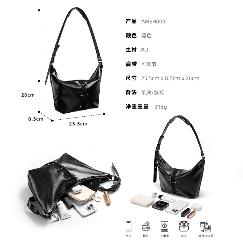 omto黑松露软hobo包新款斜挎包女大容量通勤包百搭单肩包慵懒高级