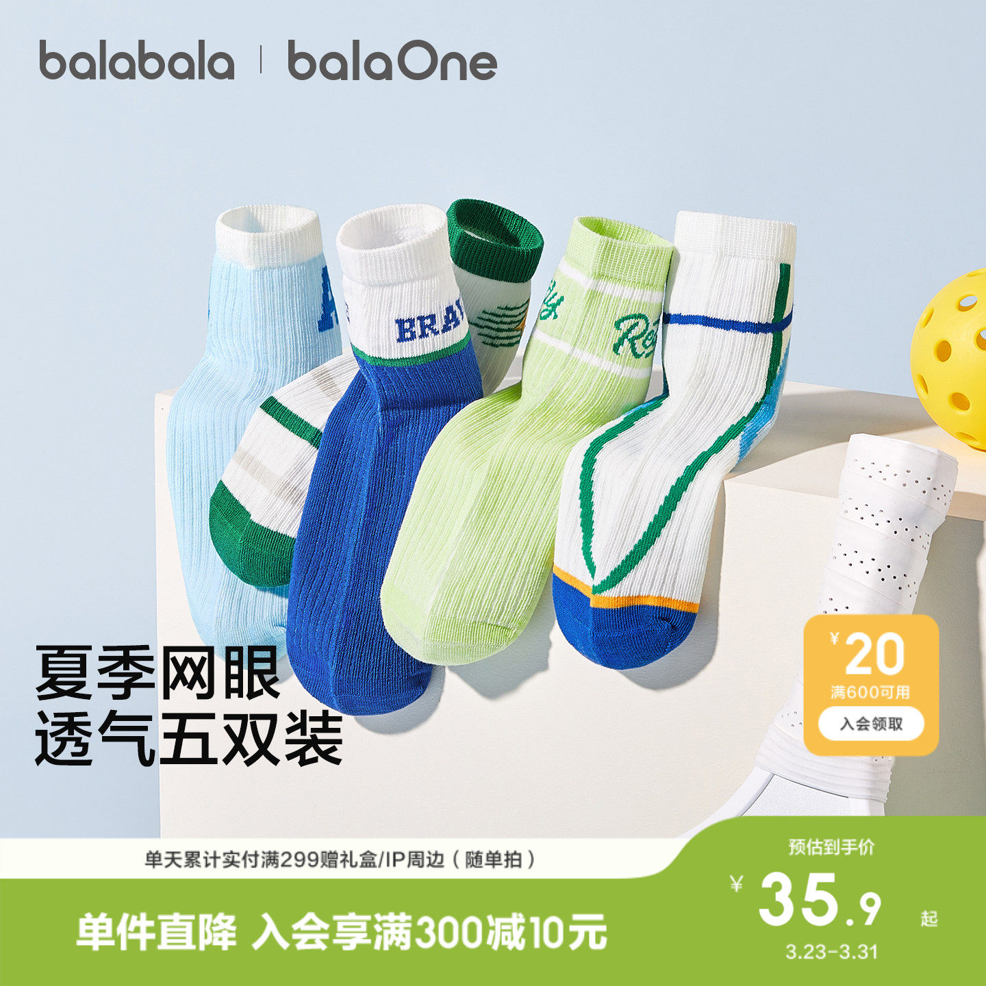 巴拉巴拉儿童袜子夏季新款网眼透气男童短袜柔弹舒适提花萌五双装