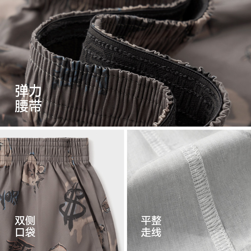 阿罗裤男生内裤纯棉居家短睡裤大裤衩女生卡通涂鸦宽松大码平四角