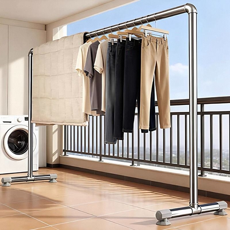 钢管晾衣架落地家用阳台户外双杆卧室水管挂衣服简易晒被子凉衣杆