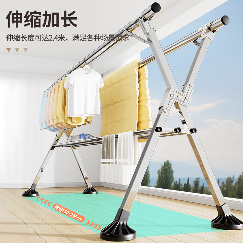 晾衣架落地折叠室内家用阳台卧室不锈钢室外凉伸缩杆式晒被子神器