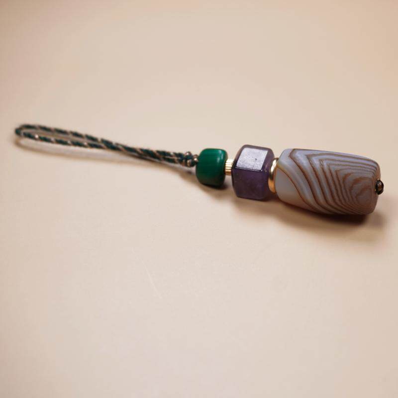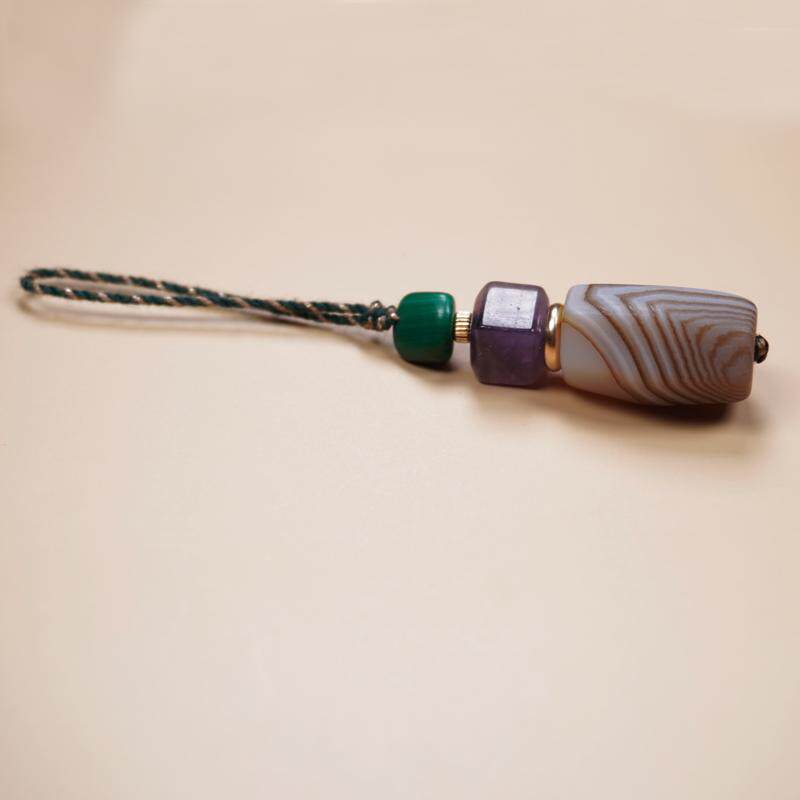 天然玉石手机挂件男女款转运挂饰孔雀石紫水晶缠丝玛瑙挂坠钥匙扣