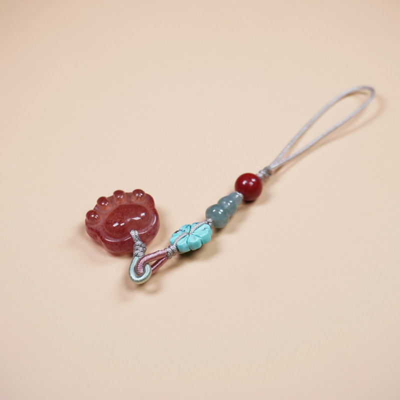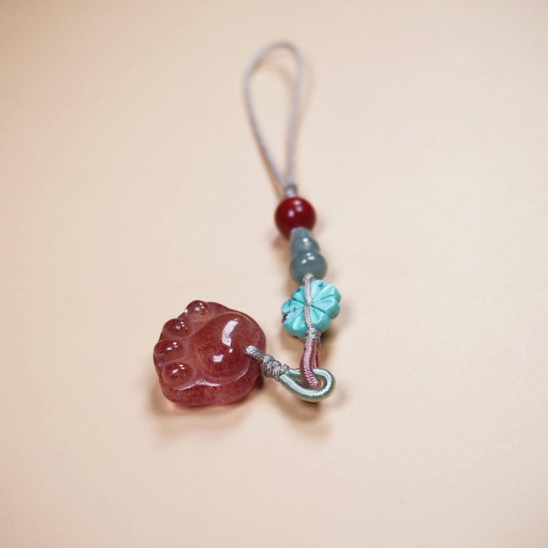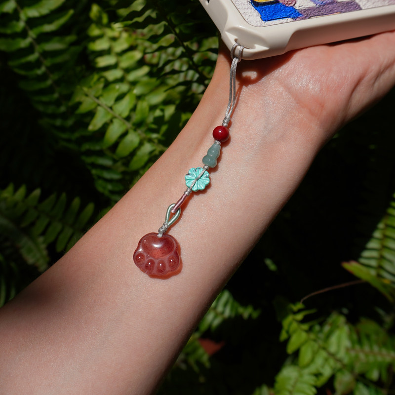 天然草莓晶挂件女款翡翠朱砂转运本命年礼物绿松石手机链玉石挂绳
