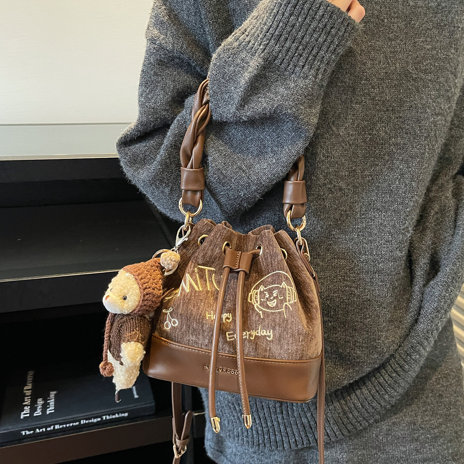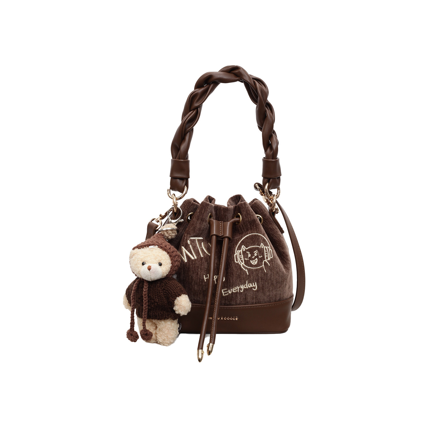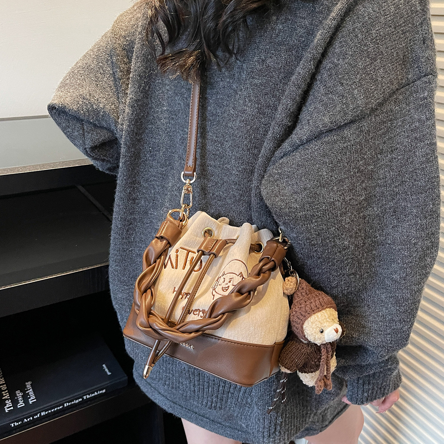 艾米兔女包2026新款通勤时尚流行简约休闲斜挎百搭麻花手提水桶包