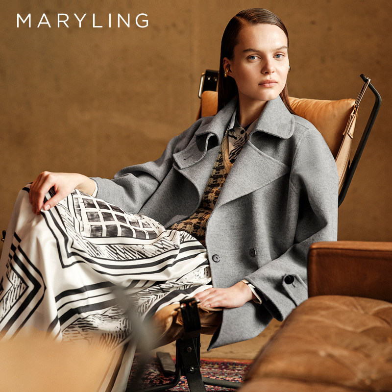 MARYLING玛俪琳2025秋冬新品高级感格雷灰双面呢大衣A1FHW93020
