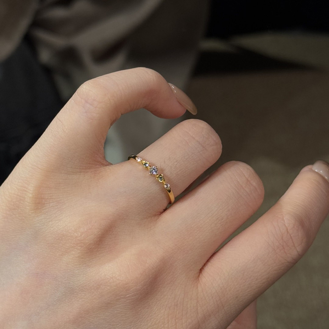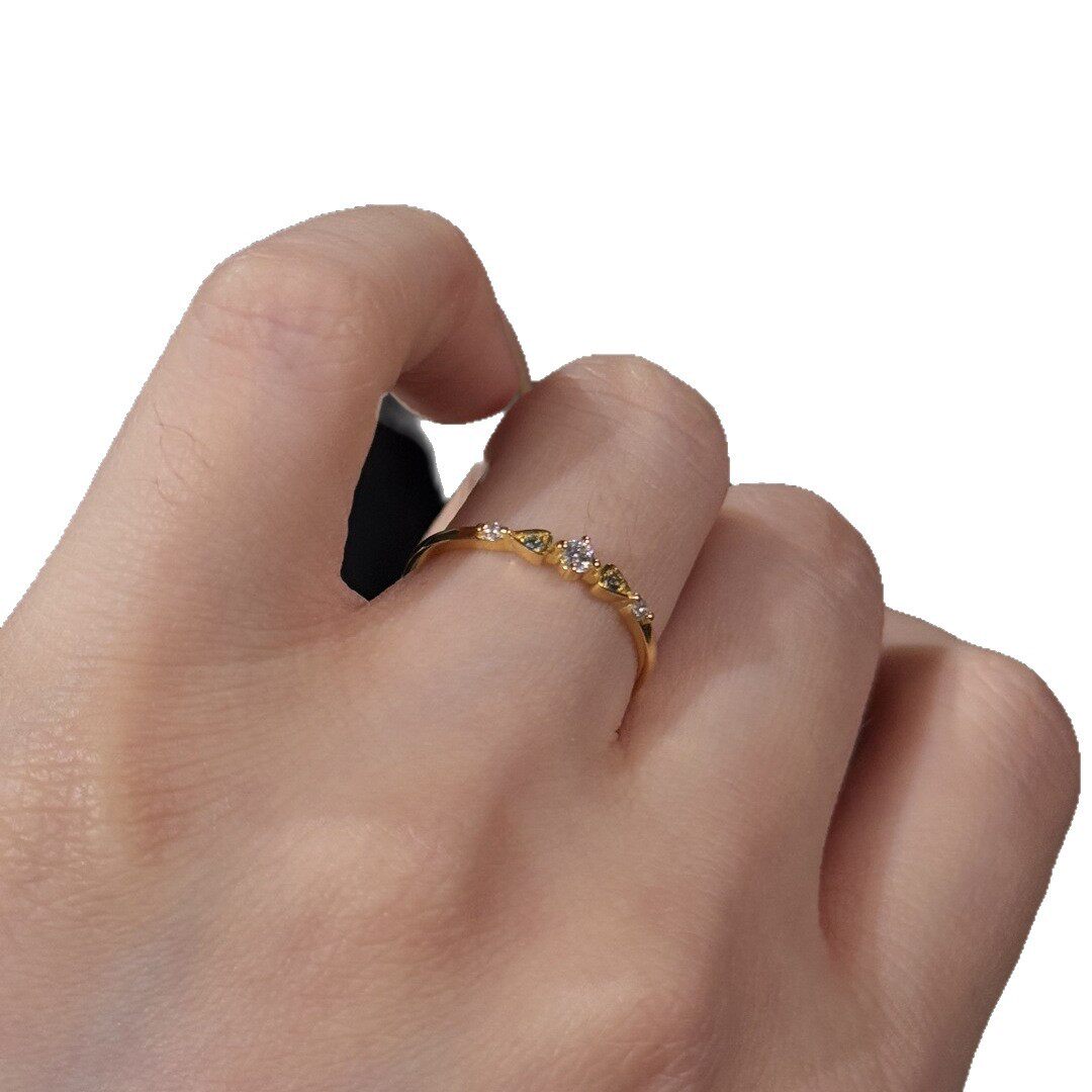 小红书同款简约时尚排钻锆石细戒指女小众设计高级感手饰素圈指环