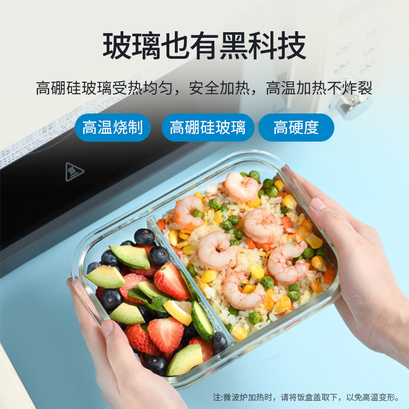 玻璃饭盒微波炉加热专用学生上班族带饭餐盒保鲜盒分隔密封便当碗