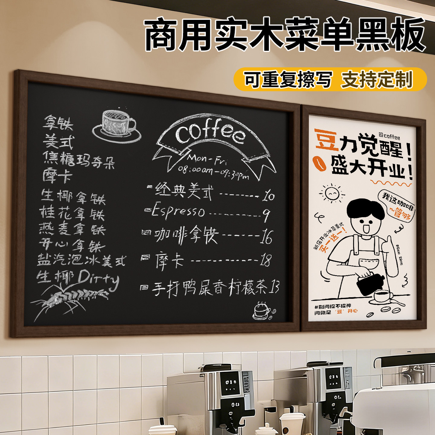 商用菜单黑板软木组合餐饮店用广告牌可擦写挂墙照片墙磁吸冰箱贴白板墙大可涂鸦墙贴奶茶咖啡展示墙木框定制