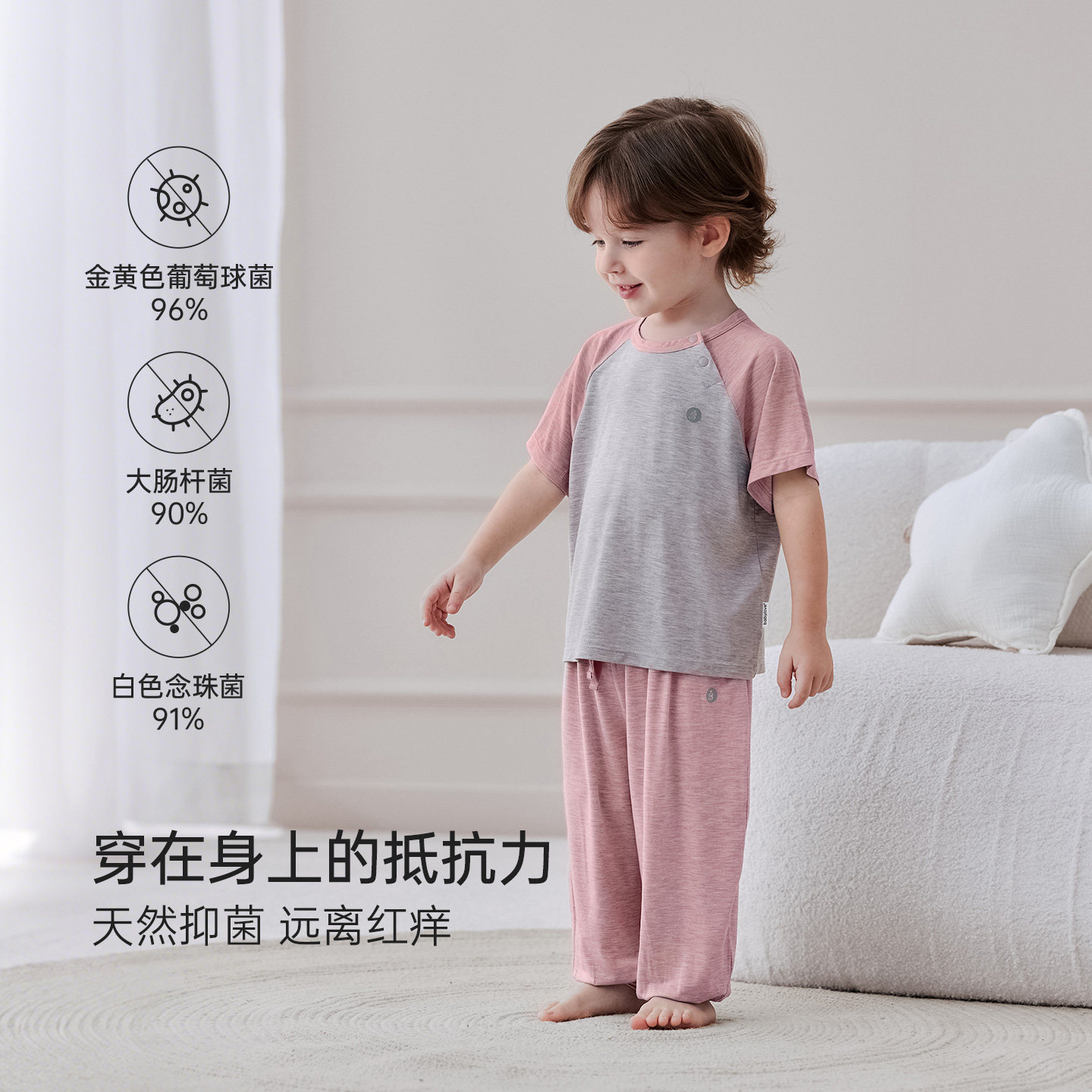 babylove宝宝家居服套装夏季薄款竹丽尔短袖t恤防蚊裤儿童空调服