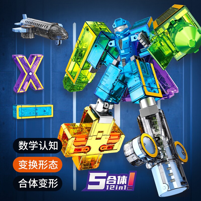 儿童数字变形玩具男女孩合体机器人金刚积木益智字母拼装生日礼物