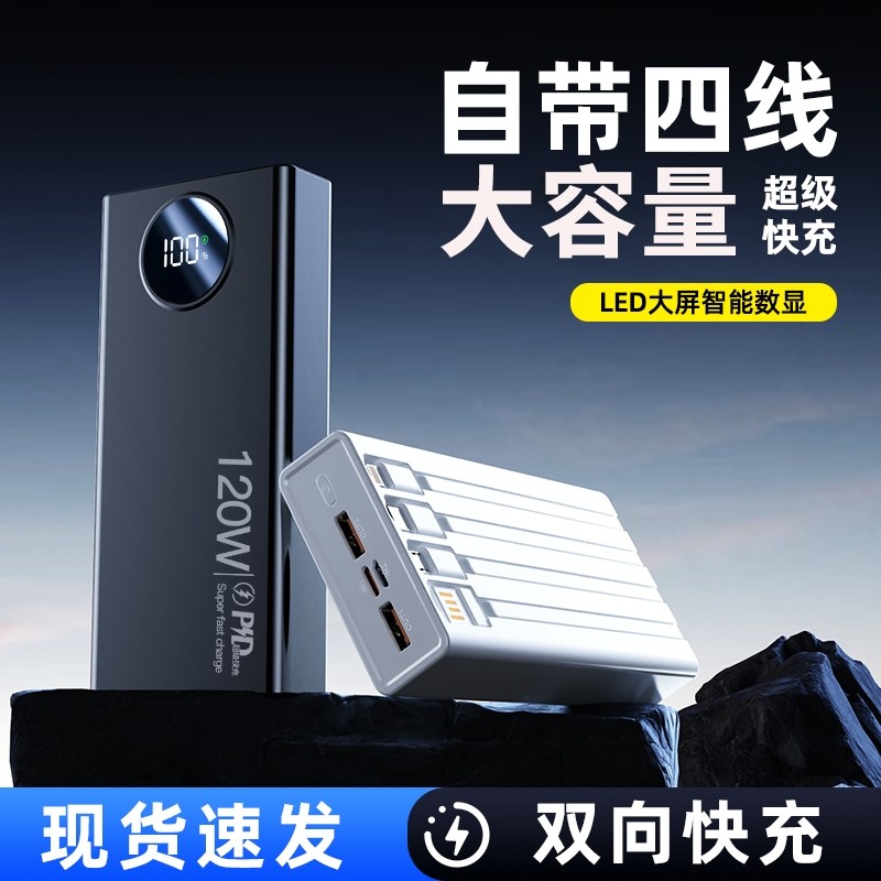 【新国标3C认证】2025新款大容量超级快充充电宝20000毫安自带线57000适用华为苹果手机专用5万正品移动电源
