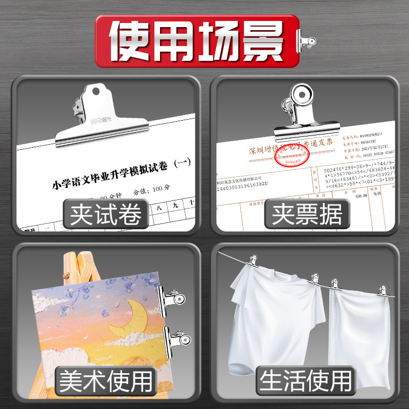 晨光夹子铁票夹夹子办公文具固定器不锈钢铁夹子特大号小书夹子文件家用多功能强力金属蝴蝶票夹铁夹工具用品