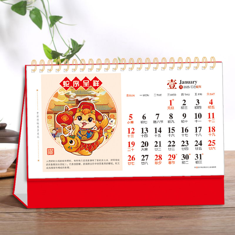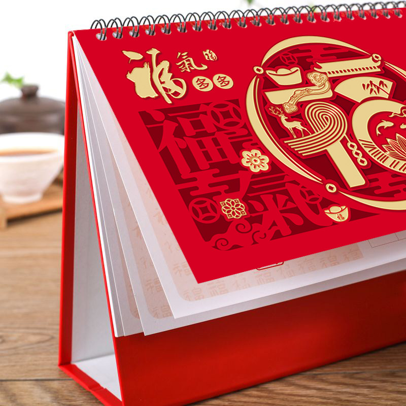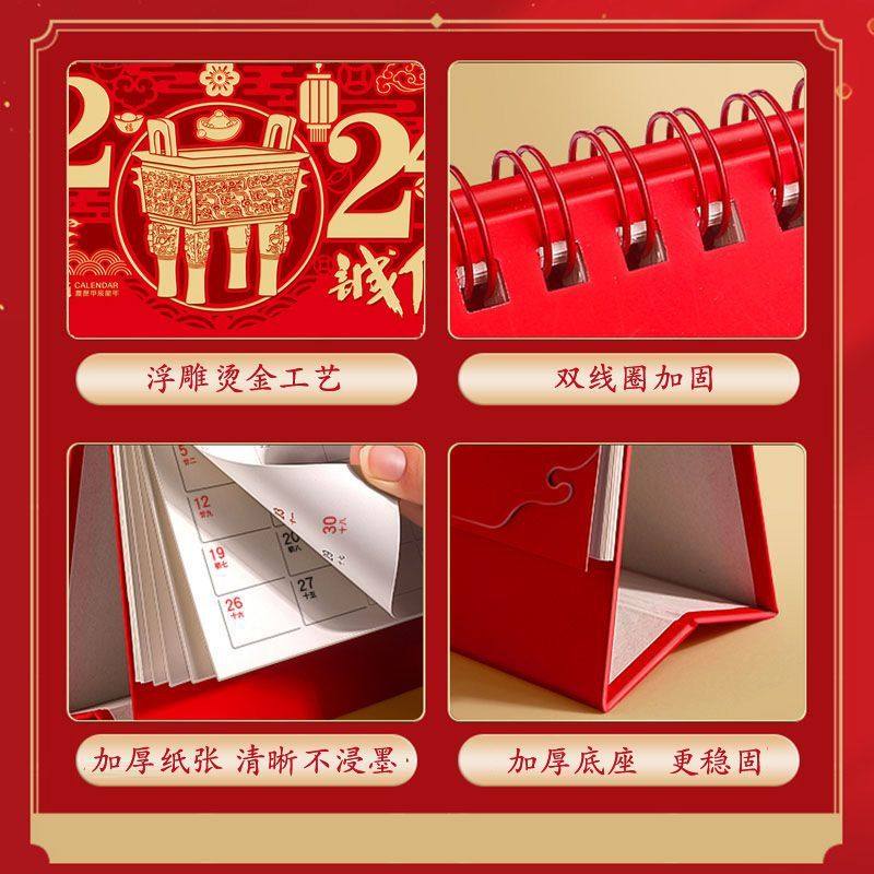 台历2026年新款中国红日历办公室创意桌面摆件大号马年新年喜庆月历工作记录记事本公司商务定制定做广告logo