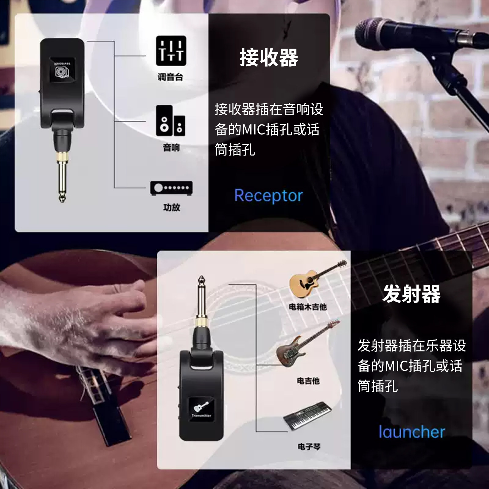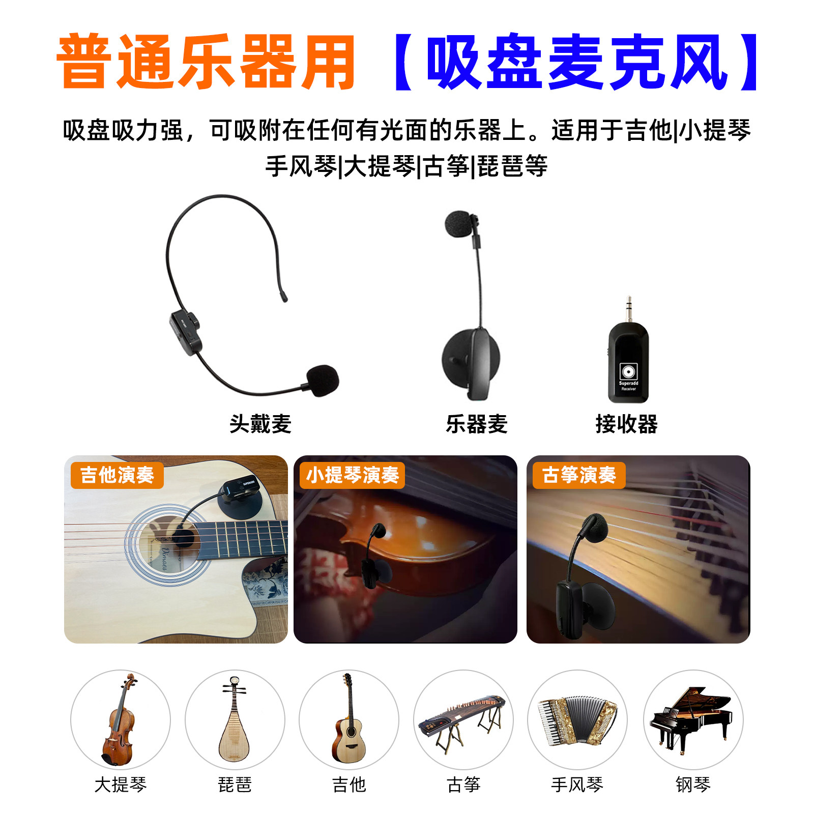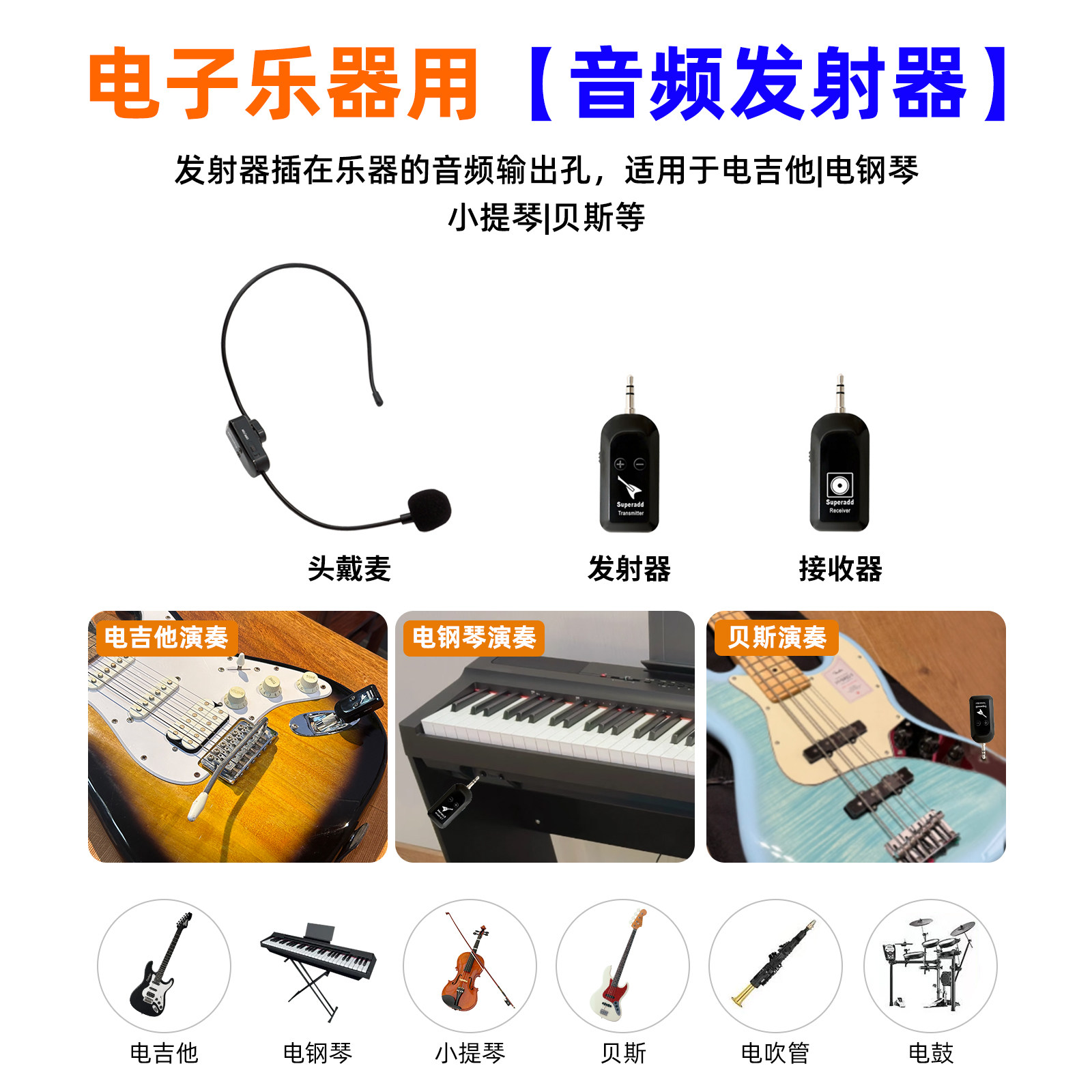 电子乐器无线弹唱麦克风电钢琴专用吉他拾音器话筒演出头戴式耳麦