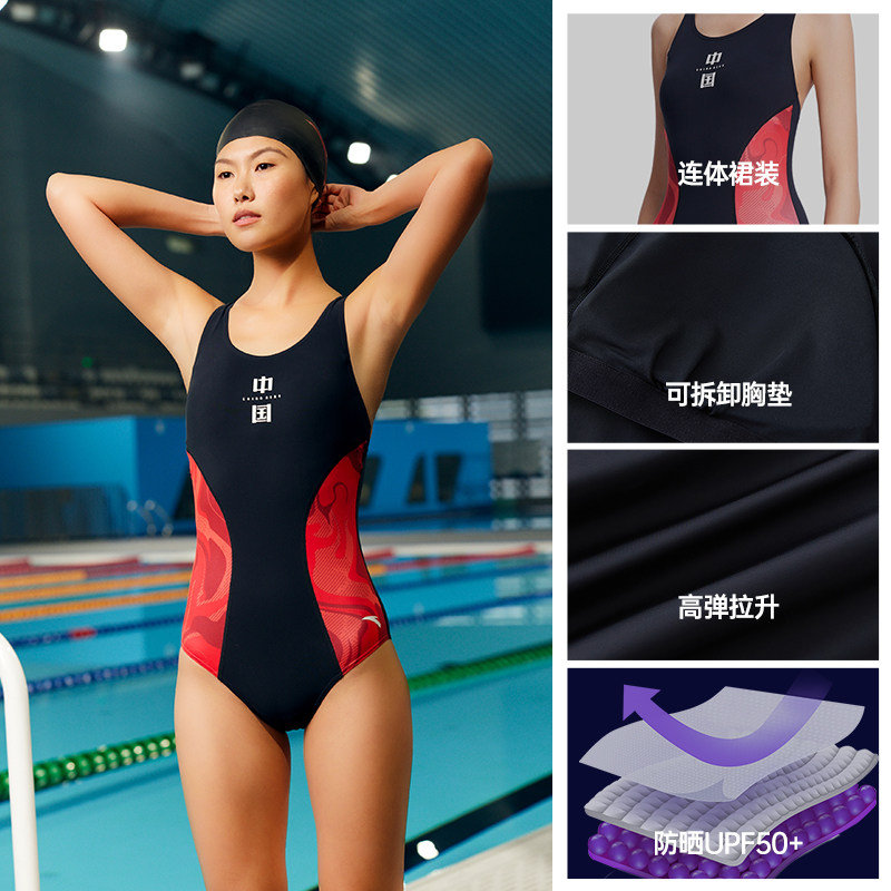 安踏女式连体泳装防晒修身显瘦专业竞技比赛高弹游泳衣新官方正品