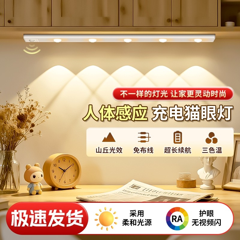 人体感应小山丘LED橱柜灯带充电式磁吸无线自粘客厅酒柜鞋柜灯条