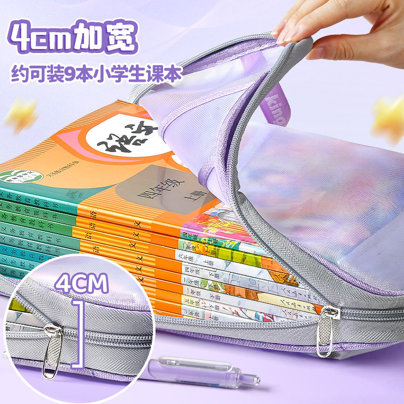 L型科目分类袋手提透明文件袋拉链式网纱学生拎书袋专用袋初中生小学生作业补习袋试卷收纳袋书本课本大容量