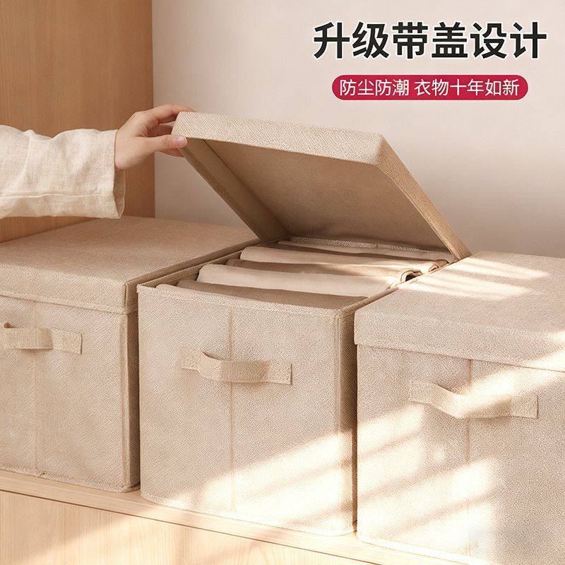 衣服收纳箱家用衣柜分层整理盒放衣物裤子布艺棉麻折叠储物筐神器