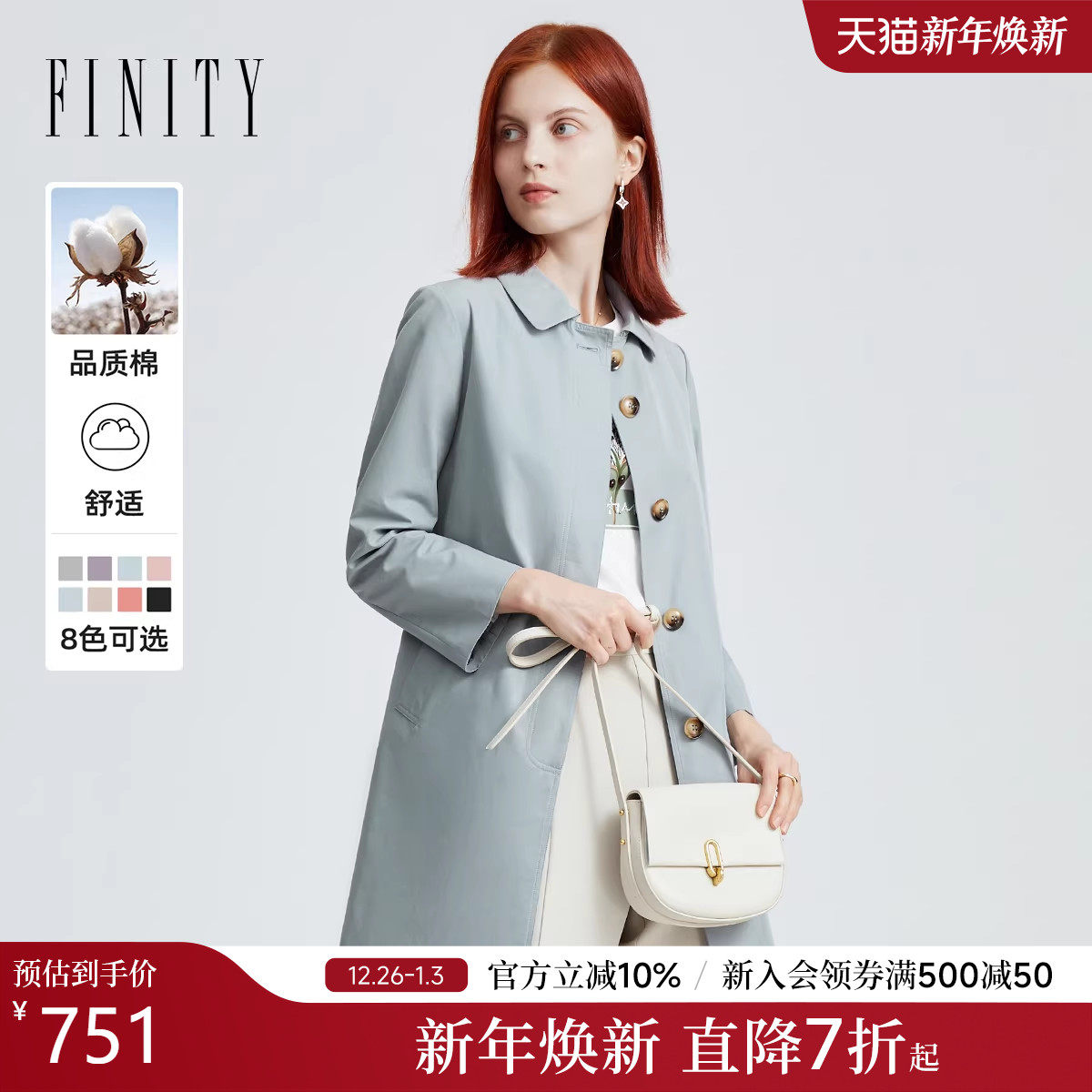 【无氟防水】Eland衣恋风衣女单排扣纯棉舒适外套2025春季新款