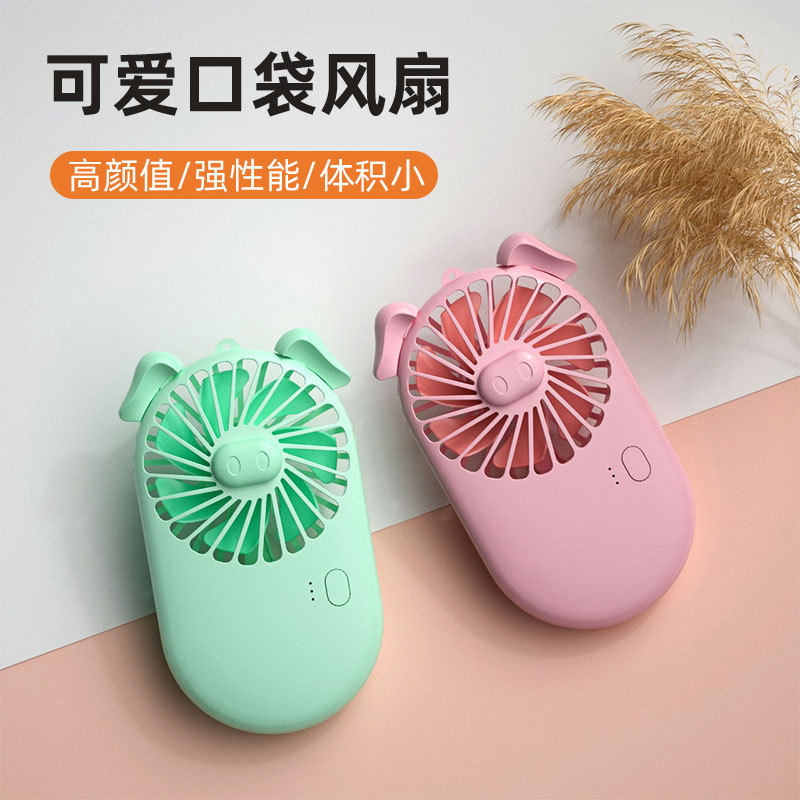 印刷logo小风扇手持风扇 usb充电便携小猪口袋风扇小礼品三挡风力