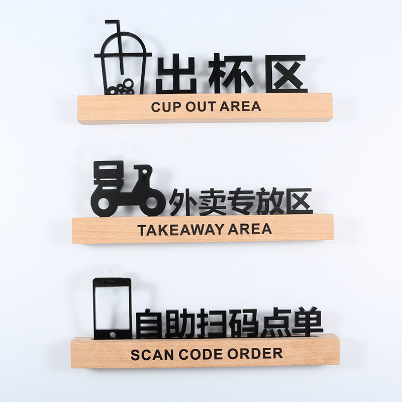 出杯点单指示牌咨询处标识牌餐饮提示牌收银台自助标志门牌贴定制