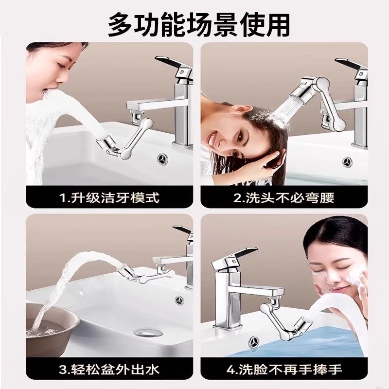 加厚机械臂万向旋转水龙头延伸器厨房面盆洗脸盆接头水嘴全铜起泡