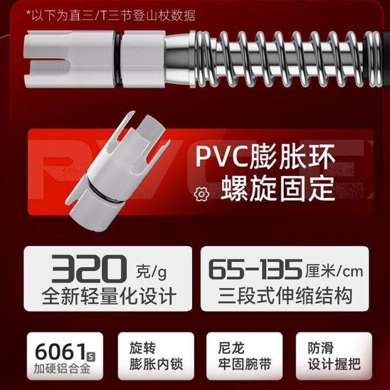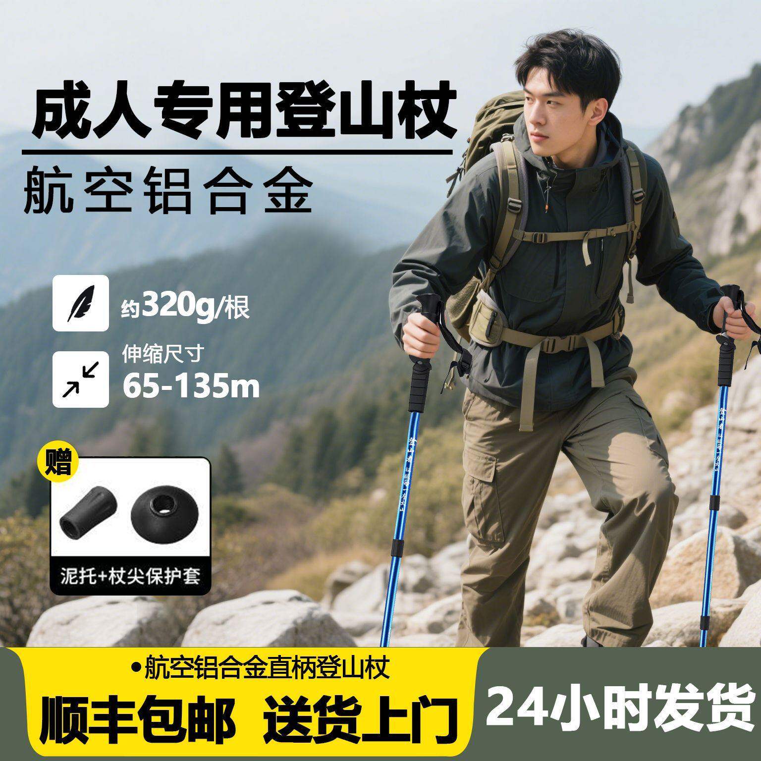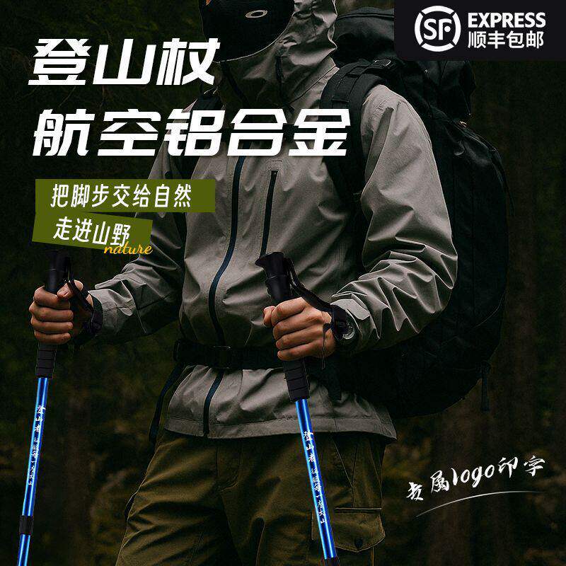 登山杖户外超轻伸缩杖男女爬山徒步装备防滑多功能老人拐杖
