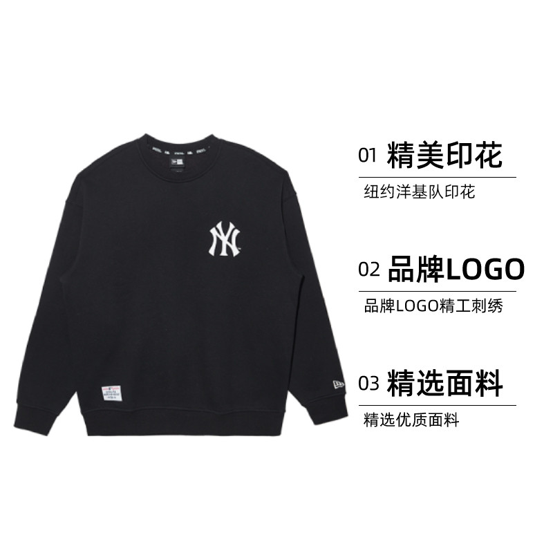 【自营】New Era纽亦华秋冬MLB时尚休闲圆领卫衣情侣同款加绒长袖