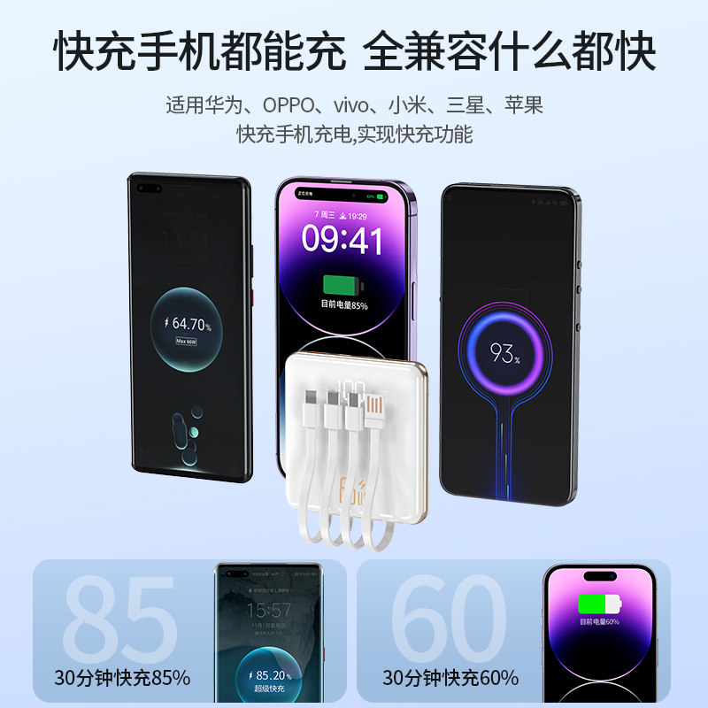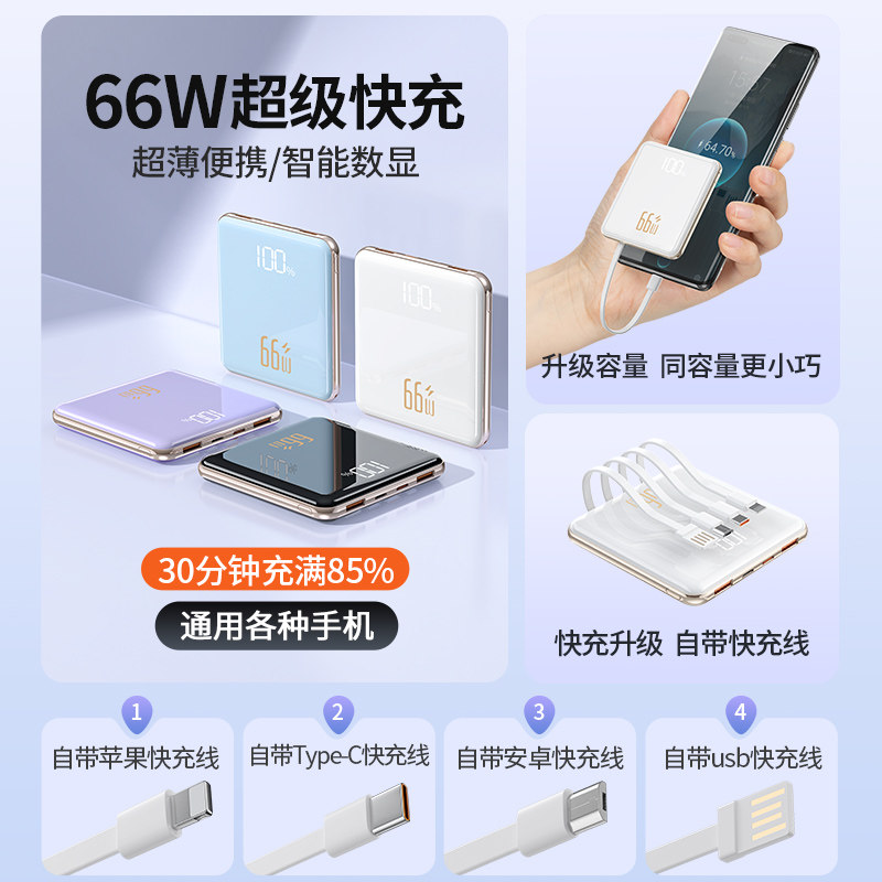 【新国标3C认证】超级充电宝快充20000毫安大容量自带线超薄小巧便携迷你移动电源适用华为苹果专用可上飞机