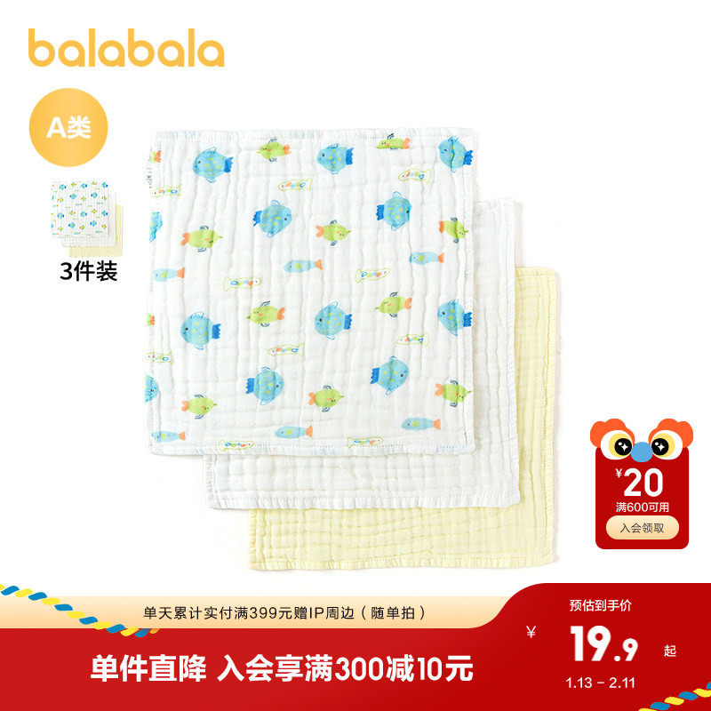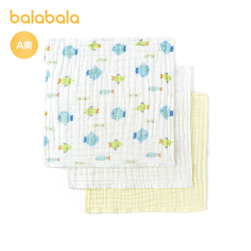 巴拉巴拉新生儿小方巾婴儿用品初生宝宝纯棉舒适简约清新三件装萌